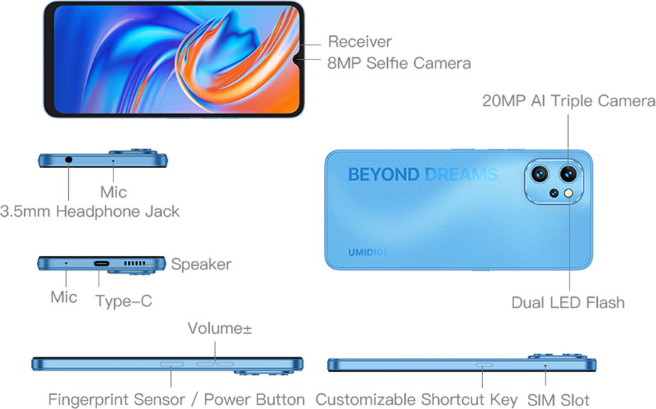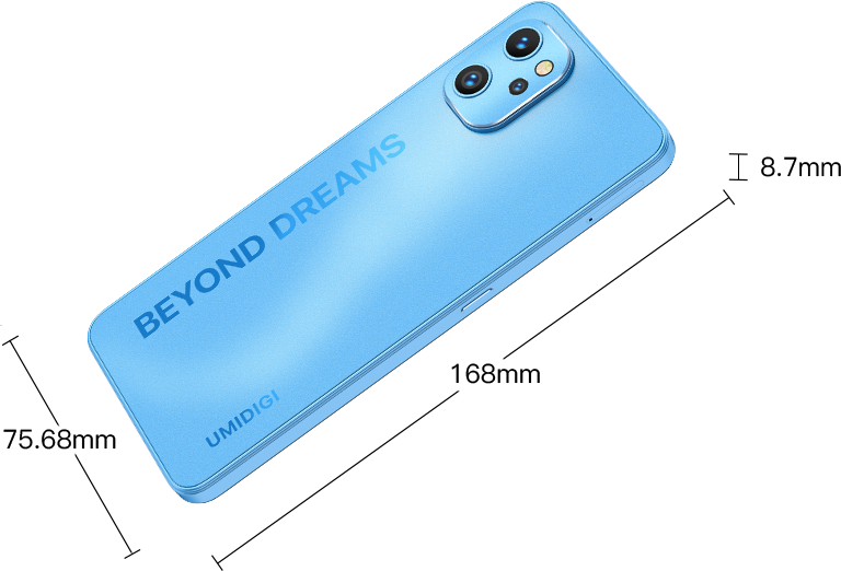Height:168mm *Data provided by UMIDIGI lab.Industry measurement methods may vary, and therefore actual results may differ. |