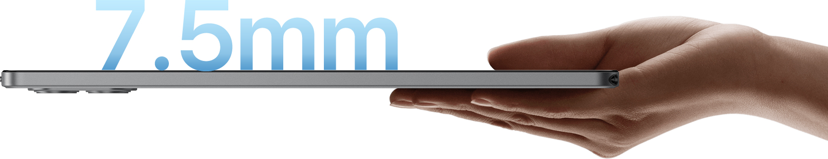 The 7.5mm unibody slim metal design, paired with classic space grey, exudes simplicity and purity. The device features a refined material that feels silky smooth to the touch.