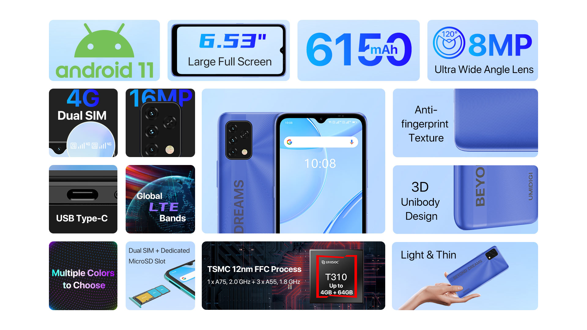 More than 30 global bands supported. Regardless of your place of residence or your destination for a journey, you can connect to the local mobile networks with your UMIDIGI Power 5S anywhere in the world. It also supports 4G in both slots simultaneously - enjoy faster data transmission, lower power consumption, and more reliable connection from now.