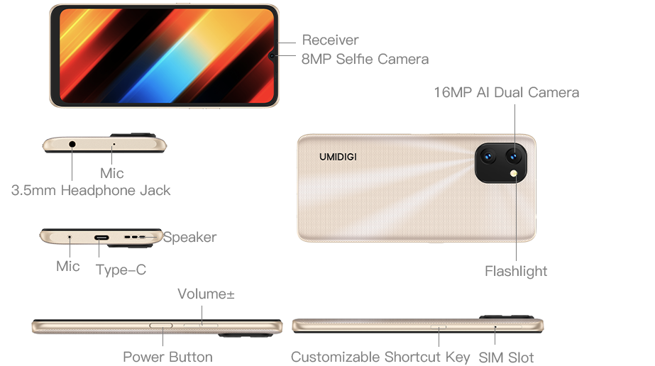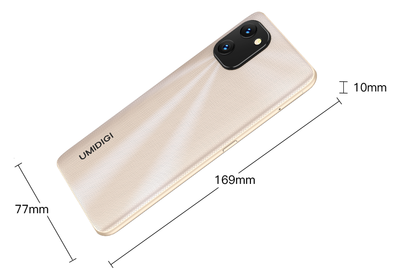 Height: 169mm *Data provided by UMIDIGI lab. Industry measurement methods may vary, and therefore actual results may differ. |